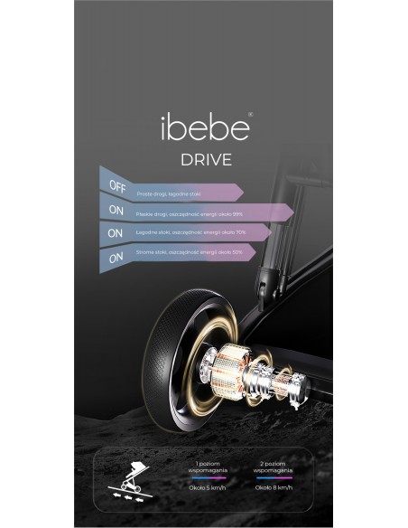 copy of Wózek z elektronicznym hamulcem i wspomaganiem jazdy ISTOP&DRIVE ibebe ECO SKÓRA BLACK
