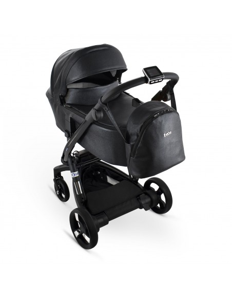 Wózek z elektronicznym hamulcem, wspomaganiem jazdy, funkcją śledzenia ISTOP FOLLOW ME ibebe ECO SKÓRA BLACK SHINE